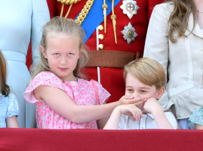 Впрочем, не все оценили реакцию Джорджа на происходящее. Семилетней кузине принца Кембриджского Саванне Филлипс, которая в тот день оказалась как раз между Джорджем и Шарлоттой, не слишком понравилось, как ее будущий монарх… поет. Да-да, озорная дочь Питера и Отэм Филлипс пока не испытывает должного пиетета к наследнику, так что не усмотрела ничего плохого в том, чтобы прикрыть ему рот ладошкой. Но, надо думать, принца Джорджа непочтительный жест кузины нисколько не обидел: мальчик продолжил хихикать, а затем, как ни в чем не бывало, вновь принялся веселиться с остальными детьми.