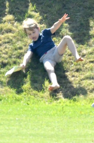 Пожалуй, никогда мы еще не видели маленького принца таким веселым и непоседливым – видимо, сказывается отсутствие камер и присутствие других детей. Наследник прытко бегал по лужайке, перепрыгивал через препятствия, катался с горки и играл с пистолетиками и слинки.