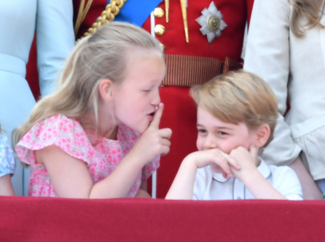 Впрочем, не все оценили реакцию Джорджа на происходящее. Семилетней кузине принца Кембриджского Саванне Филлипс, которая в тот день оказалась как раз между Джорджем и Шарлоттой, не слишком понравилось, как ее будущий монарх… поет. Да-да, озорная дочь Питера и Отэм Филлипс пока не испытывает должного пиетета к наследнику, так что не усмотрела ничего плохого в том, чтобы прикрыть ему рот ладошкой. Но, надо думать, принца Джорджа непочтительный жест кузины нисколько не обидел: мальчик продолжил хихикать, а затем, как ни в чем не бывало, вновь принялся веселиться с остальными детьми.