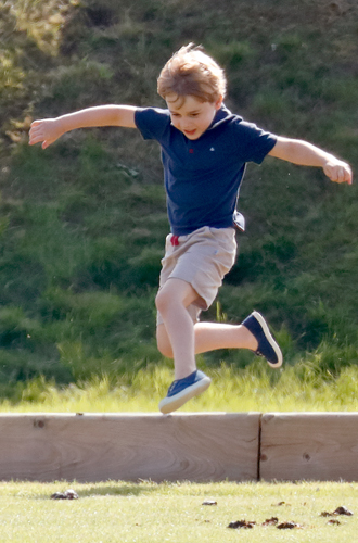 Пожалуй, никогда мы еще не видели маленького принца таким веселым и непоседливым – видимо, сказывается отсутствие камер и присутствие других детей. Наследник прытко бегал по лужайке, перепрыгивал через препятствия, катался с горки и играл с пистолетиками и слинки.