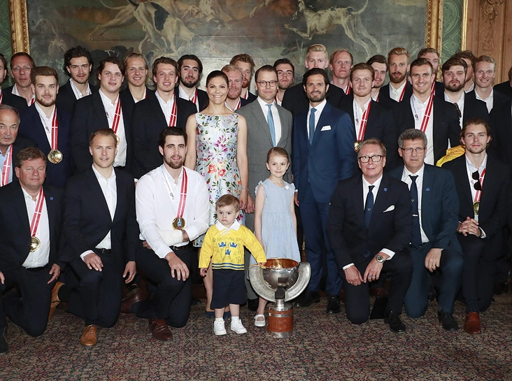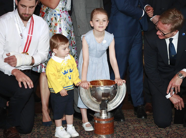 Впрочем, нельзя сказать, что мальчик совсем не помогает родителям в их представительской работе. К тому же, с его спокойным характером и по-настоящему монаршей невозмутимостью можно не беспокоиться о том, что он внезапно закапризничает. Так, 21 мая малыш Оскар присоединился к семье в чествовании Сборной Швеции по хоккею с шайбой и на этот раз именно он стал самой яркой звездой мероприятия. Буквально. Мальчик смотрелся очень трогательно в желтом свитере с символикой команды. Настоящий талисман для спортсменов!