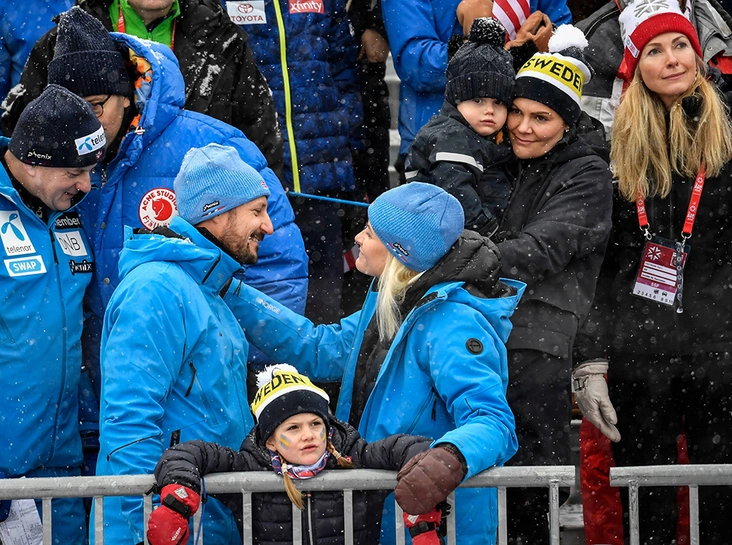 В феврале шведский город Оре принимал у себя Чемпионат мира по горнолыжному спорту , на который съехались не только любители спорта по всему миру, но и некоторые монаршие особы. В частности навестить шведских соседей приехали кронпринц и кронпринцесса Норвегии, вместе с которыми семья Виктории посетила одно из соревнований. Разумеется, принц Оскар смотрел за гонкой вместе со всеми – надо сказать, весьма увлеченно.