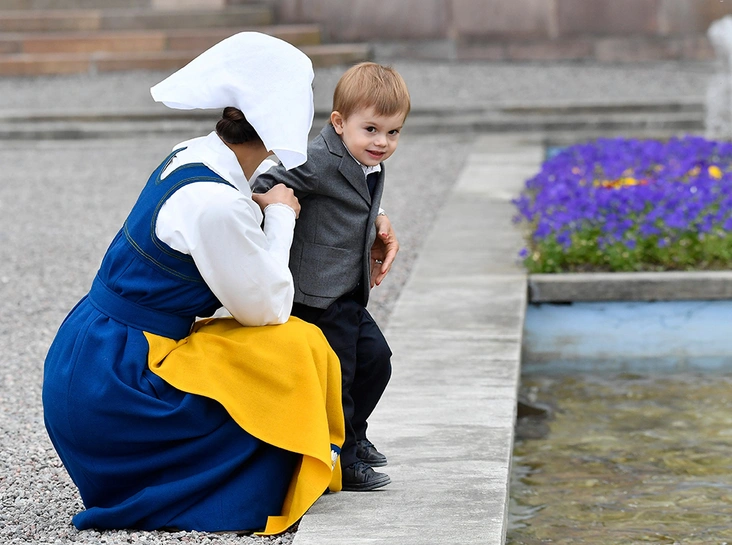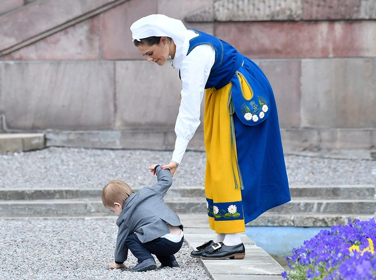 Впрочем, уже 14 июля Оскар вновь вышел в свет вместе с сестрой. Случай особый: в этот день свой день рождения праздновала мама принца, кронпринцесса Виктория. Традиционно для шведов это праздник сродни государственному, а потому все наследное семейство в полном составе вышло, чтобы пообщаться с публикой.