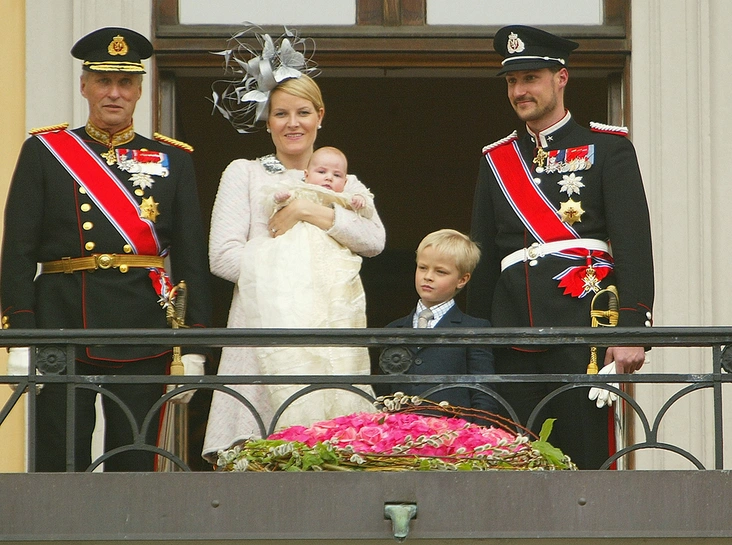 Однако полноценный дебют принцессы случился только в конце апреля – именно тогда, 17 числа, в Часовне Королевского дворца состоялись крестины Ингрид Александры. На событие в тот день съехалось множество коронованных особ со всей Европы, что, впрочем, неудивительно, ведь крестными родителями будущей норвежской королевы были объявлены далеко не безызвестные персоны. Судите сами: король Норвегии Харальд V (дедушка малышки), принцесса Марта Луиза (ее тетя), датский кронпринц Фредерик, шведская кронпринцесса Виктория, принц Астурийский Филипп (сейчас он уже король Испании) и, наконец, Марит Тьессем (бабушка принцессы со стороны матери).