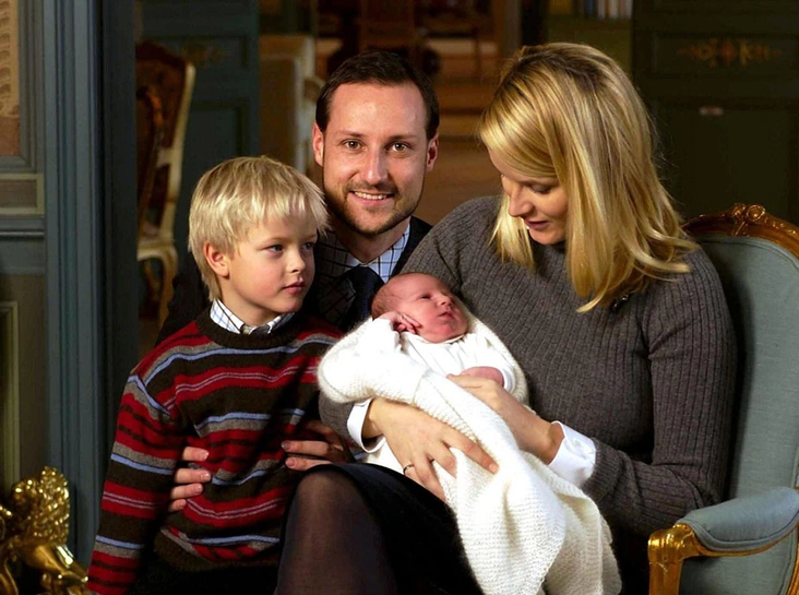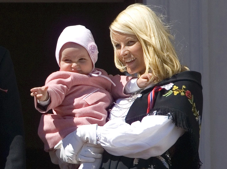 Девочка родилась в госпитале в Осло, и это событие было встречено, словно национальный праздник. Наконец-то, у королевства появилась законная наследница, да еще и первая девочка, претендующая на звание монарха, в истории страны. Конечно же, несмотря на то, что кронпринц Хокон усыновил маленького Мариуса Борга, мальчик не мог занимать престижную очередь, так что вся нация с упоением ждала рождения совместного ребенка кронпринца и кронпринцессы. У Метте-Марит не было «торжественной» выписки из госпиталя, как это принято, к примеру, в Британии или Испании, так что впервые кронпара представила малышку народу, собравшись на небольшую семейную фотосессию.