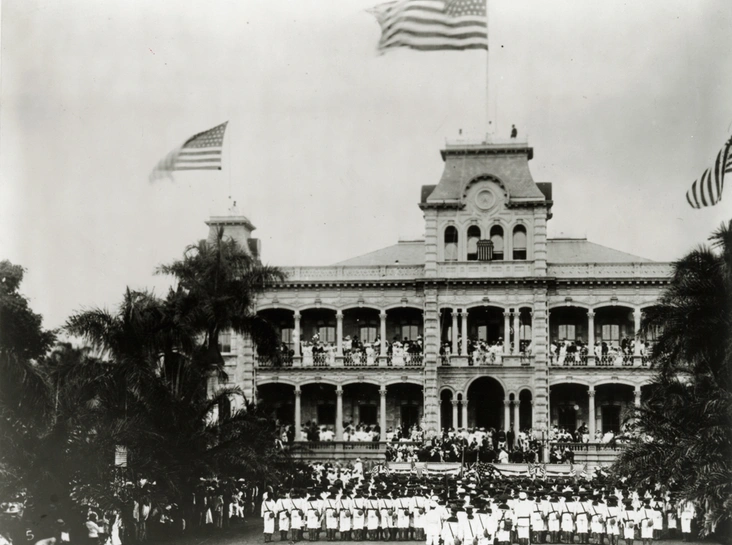 Вашингтон уже давно смотрел на Гавайские острова как на свою потенциальную военную базу в самом сердце Тихого океана. Внутри самих Штатов пресса изображала народ Гавайев, как варварский, дикий и совершенно не способный сам собой управлять, а действующая Королева и ее наследница описывались простым американцам необразованными папуасками. Правда, фото к разгромным статьям никто не прилагал, но это не мешало журналистам медленно, но верно убеждать американцев в том, что присоединение Гавайев — это благородная миссия правительства США по спасению несамостоятельных островитян.