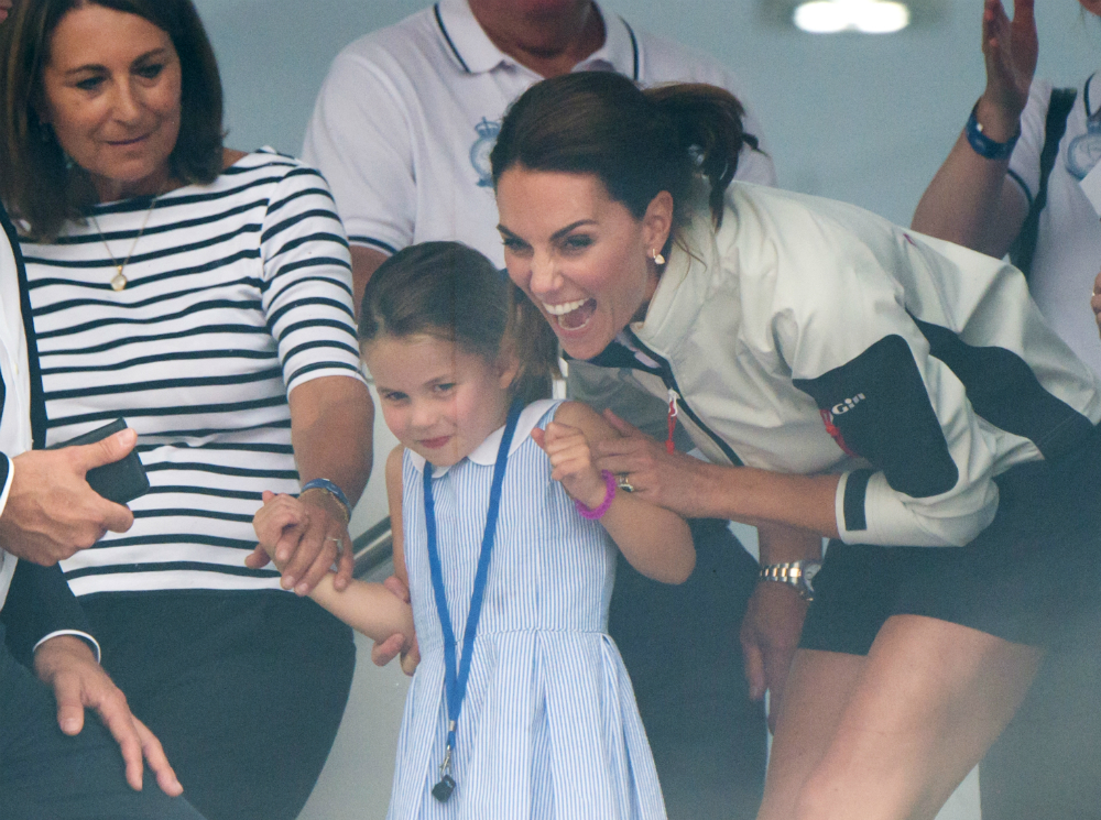 Перед началом учебного года принцесса Шарлотта успела блеснуть на еще одном официальном мероприятии — 9 августа Ее Высочество вместе с семьей присутствовала на парусной регате на острове Уайт. Этот выход особенно запомнился поклонникам королевской семьи благодаря забавному инциденту, который произошел во время фотосессии. Когда Кейт Миддлтон попросила принцессу Шарлотту помахать рукой, юная наследница четы Кембриджских не пожелала следовать правилам и показала присутствующим язык, что страшно развеселило публику (читайте также: Кембриджские приняли участие в парусной регате на острове Уайт).