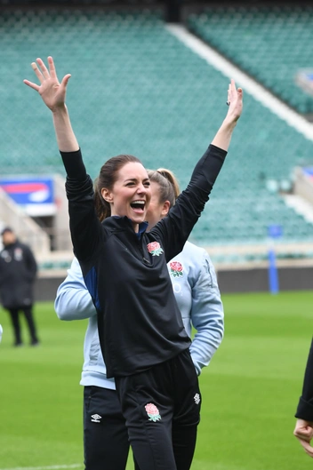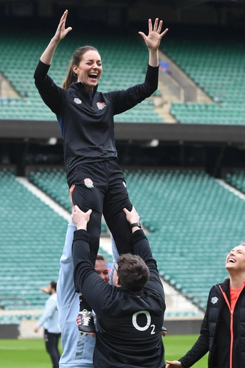 Принцесса Уэльская была назначена покровителем Футбольной лиги регби — эту должность занимали Меган и Гарри, пока не вышли из БКС. Кейт присоединилась к тренировке с членами сборной Англии, и рассмеялась, когда члены команды подняли ее ввысь (это один из способов бросить мяч в регби).