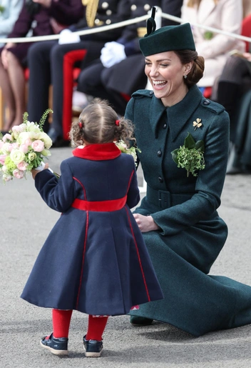 В 2022 году Кейт и Уильям посетили гвардию в День Святого Патрика. Подполковник Роб Мани решил подшутить над своей трехлетней дочерью, и надел на нее свою шапку из медвежьей шерсти. Головной убор в несколько метров на миниатюрной девочке — эта комичная картина рассмешила Кэтрин и всех присутствующих.