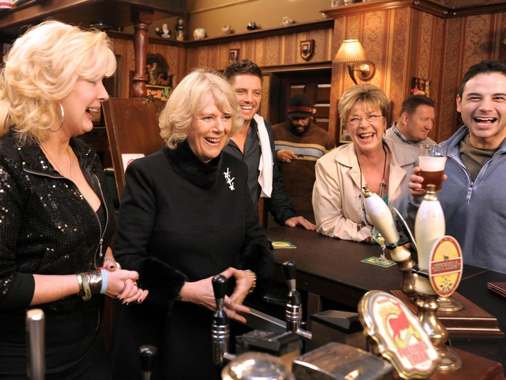 Многие из королевских особ навещали съемочные площадки прославленных сериалов. В 2010 году герцогиня Корнуольская добралась до шоу «Улица Коронации» (Coronation Street). К слову, съемочную площадку в Манчестере десятью годами ранее навещал и принц Уэльский, рассмешивший Лиз Доун, которая играла Веру Дакворт. И, конечно, обоих королевских гостей сразу привлекла барная стойка.