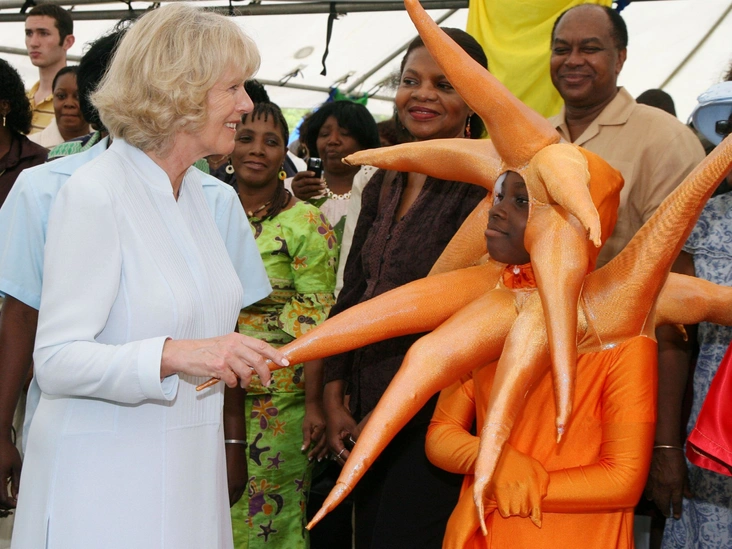 Судя по всему, вторую жену принца Чарльза всегда интересовали костюмированные мероприятия. Во время визита в Морской исследовательский центр Тобаго Камилла обратила особое внимание на ребенка, одетого как рифовый полип, и даже проверила костюм наощупь.