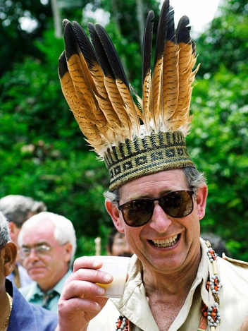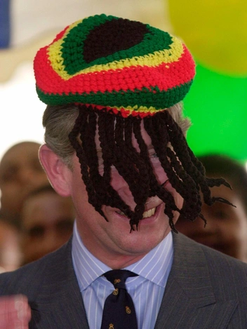 Однако куда более эффектно монарх смотрится в необычных головных уборах. Например, в берете, подаренном ему Ритой Марли во время его визита дом музыки регги в Тренчтауне на Ямайке. Или в головном уборе из ястребиных перьев и пальмовых листьев, которыми он был коронован индейцем Чие в Гайане.