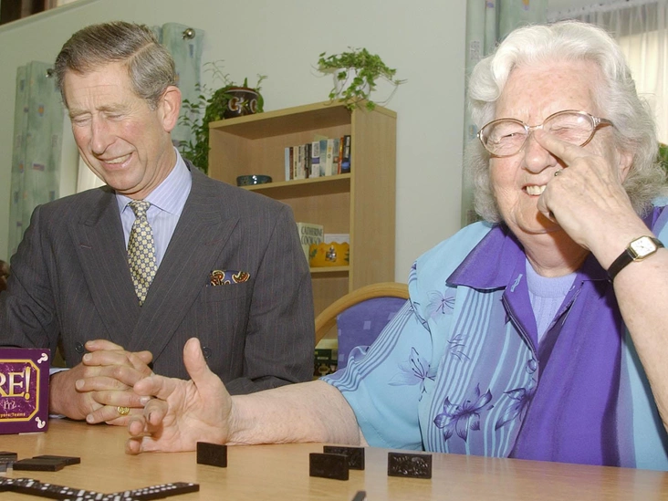 Когда принц Чарльз посетил жилой комплекс Coopers Court Home в 2002 году, он перекинулся несколькими шутками с принимавшей его в своей квартире Мэри Миррой. Ради высокопоставленного гостя дама из Майл-Энда в Восточном Лондоне сделала небольшой перерыв в игре, благодаря чему кадр получится еще более забавным.