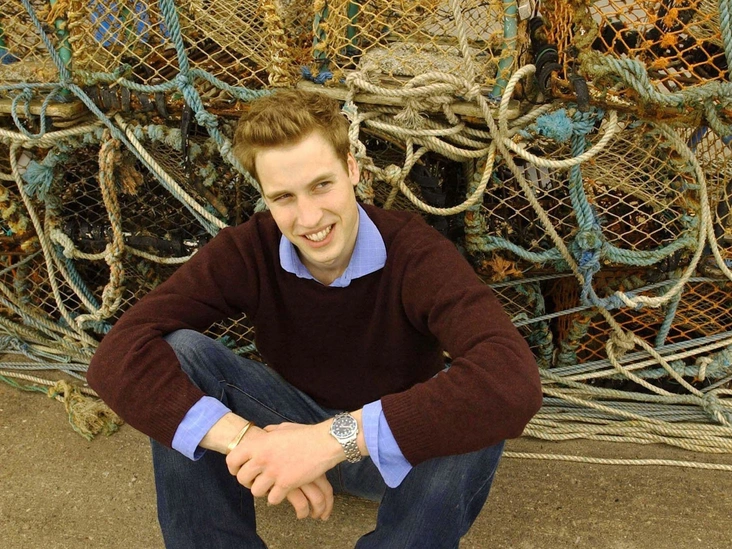 После gap year принц Уильям поехал изучать историю искусств в университете в Шотландии. Здесь он позирует фотографу перед ловушками для омаров на берегу гавани в Сент-Эндрюс.