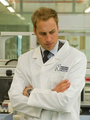 Выяснилось, что на Его Королевском Высочестве одинаково хорошо смотрится и лабораторная форма, и двубортные костюмы. На этих снимках принц Уильям официально открывает Дарвиновский центр в Музее естественной истории в Лондоне в 2009 году, где доктор Ивонн Линтон показала ему, как извлекать ДНК из насекомых.