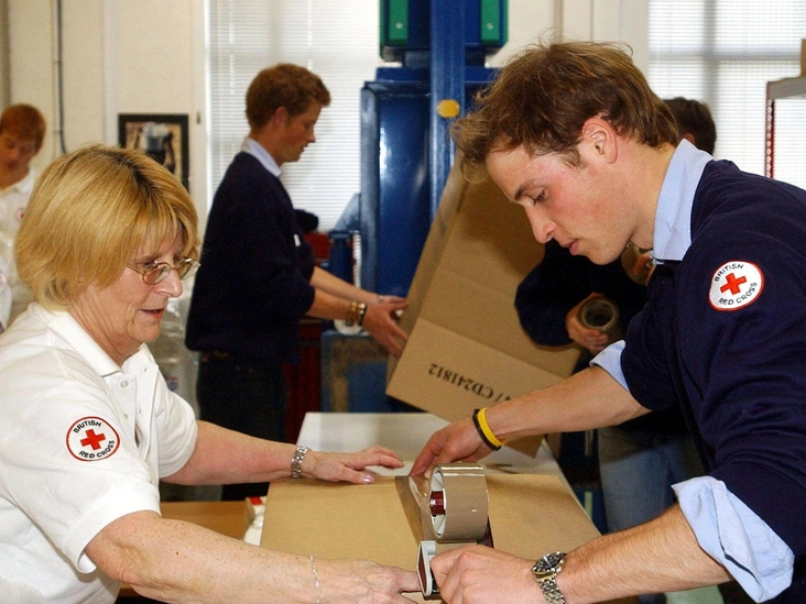 Большинство Виндзоров начинают участвовать в благотворительных мероприятиях с молодости, и будущий наследник трона не исключение. На это снимке принц Уильям помогает с упаковкой предметов, предназначенных для пострадавших от цунами на Мальдивских островах, на складе Красного Креста недалеко от Бристоля. Бок о бок с ним работал его младший брат.