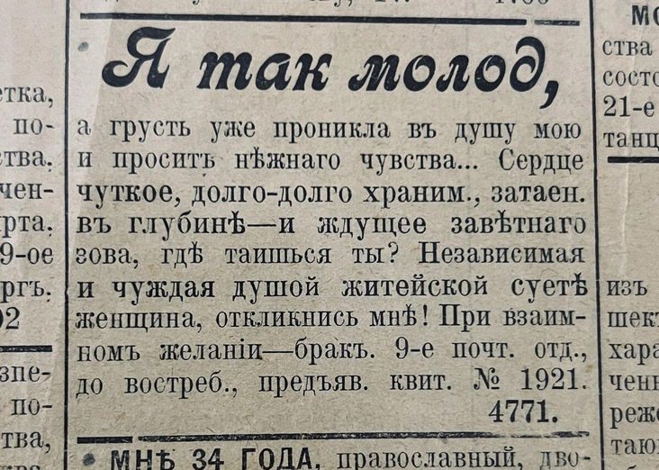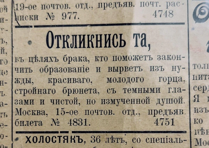 Что это были за объявления, о чем в них писали и как их авторы привлекали к себе внимание, чтобы поскорее встретить любовь? Рассказывает Артем Маратканов, основатель it-сервиса для изучения истории семьи Famiry.