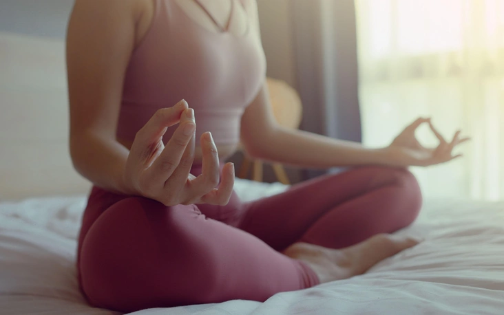 Сядьте в удобную для вас позу — лучше в позу лотоса или просто на стул. Спина должна быть прямой.
