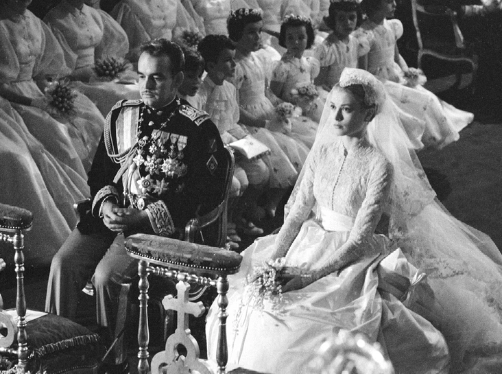 Оскароносная актриса Грейс Келли, в разное время состоявшая в отношениях с Кларком Гейблом и Уильямом Холденом, вышла замуж за 32-летнего князя Монако Ренье III 19 апреля 1956 года. Эффектное прибытие Грейс Келли на корабле, шестиярусный торт в виде дворца, подвенечное платье из бельгийского кружева, охапки цветов, шампанское и десерты для подданных Монако — их роскошное торжество стоимостью в 45-55 миллионов долларов, на котором присутствовало более 600 гостей, включая включая Кэри Гранта, Аристотеля Онассиса, Аву Гарднер и многих других, было названо свадьбой века, и это неудивительно.