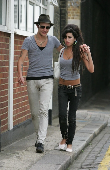 Эми Уайнхаус и ассистент по видеозаписи Блейк Филдер познакомились в 2005 году и не расставались полгода до тех пор, пока не поняли, что эти отношения причиняют им слишком много боли. Уайнхаус вернулась к бывшему, но и там не нашла счастья и написала легендарный трек «Back to Black», который посвятила Филдеру. В 2007 году пара снова встретилась и обручилась буквально через несколько месяцев — но их отношения все еще мало напоминали сказку. После свадьбы в Майами пару застали за яростной ссорой в отеле, после которой Эми была в крови, а тело Блейка в царапинах. В том же году мужа Эми посадили в тюрьму за драку в пабе и противодействие полиции, и, уже из тюрьмы, в 2008 году Блейк подал на развод.