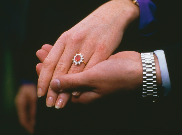 Эндрю был воодушевлен: видя, как Сара поглядывает на знаменитое сапфировое кольцо своей подруги, он на всех парусах помчался в Garrard за чем-то похожим. И нашел. В 1986 году сияющий от счастья принц вышел к прессе, ведя под руку свою возлюбленную, на безымянном пальце которой красовалось великолепное кольцо с бирманским рубином в окружении десяти небольших бриллиантов. Выбирая огненный камень, сын Елизаветы вдохновлялся шевелюрой своей невесты. Увы, подумай Эндрю о том, какое проклятье в династии Виндзоров несут в себе рубиновые помолвочные кольца, быть может, его выбор пал бы и на другой камень. Но сделанного не воротишь: Сара с очаровательной улыбкой и мыслями о прекрасном будущем подписалась на самые беспокойные несколько лет в своей жизни.