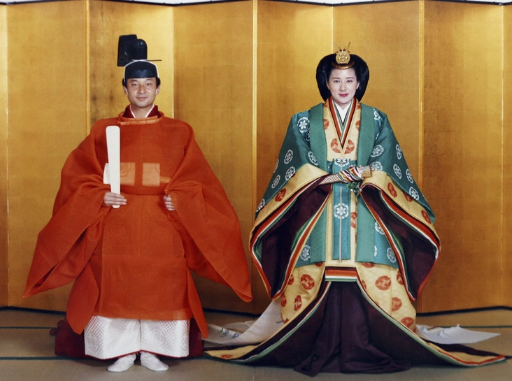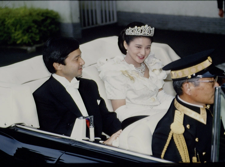 В день свадьбы Императорский двор действительно принудил Масако последовать традиции и надеть старинное кимоно на закрытую церемонию. В день же гражданского бракосочетания ей и Нарухито было разрешено переодеться, так что перед народом новоиспеченная супруга принца разъезжала в открытой карете, совсем как европейская принцесса, одетая в белое подвенечное платье и с бриллиантовой тиарой на голове.