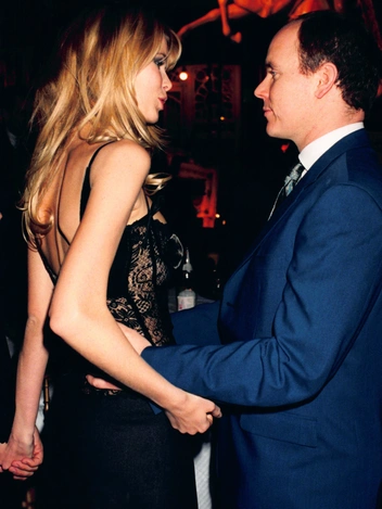 В свое время Альбер Монакский слыл настоящим плейбоем. Он несколько раз был запечатлен с супермоделью Наоми Кэмпбелл — то держащим ее за руку, то поедающим торт из рук одетой в леопардовое платье Dolce & Gabbana чернокожей красавицы на праздновании ее дня рождения. Похоже, что роман закончился дружбой, а Наоми пригласили на свадьбу Альбера II и Шарлен Уиттсток.