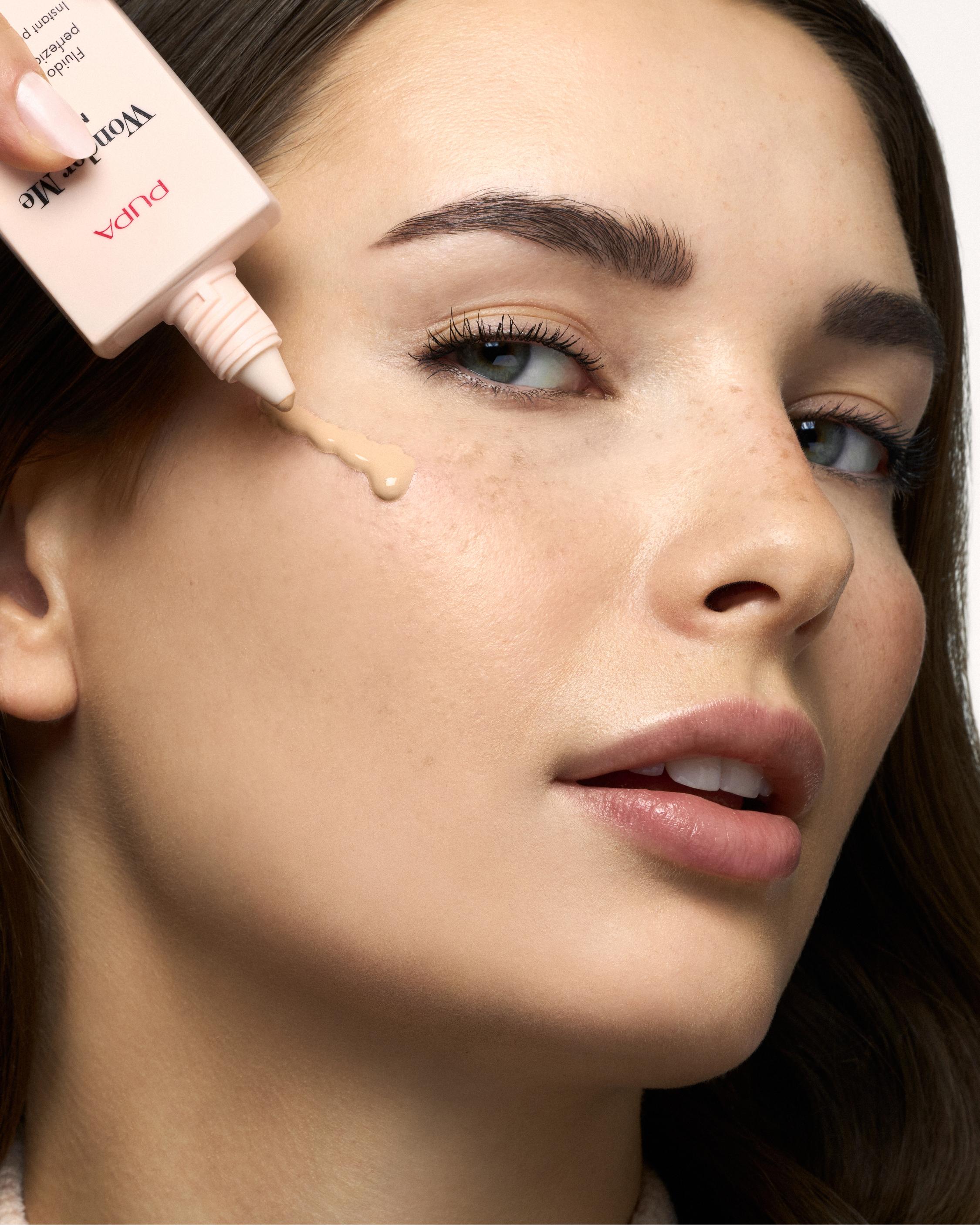 У Wonder Me Nude две фишки, и они обе работают на результат. Флюид с эффектом второй кожи и полноценный уход с накопительным действием. Уже с первого применения ты получаешь выровненный тон, легкое ретуширование и сияние без чувства плотности или перегруза. А с каждым днем формула с 90% ухаживающих ингредиентов будет делать твою кожу только лучше.