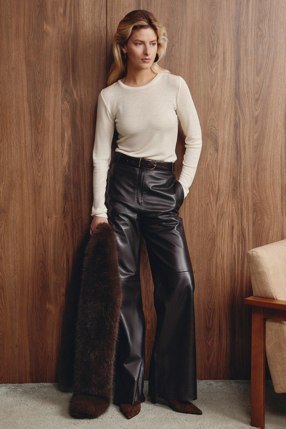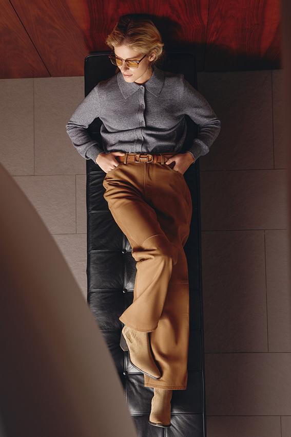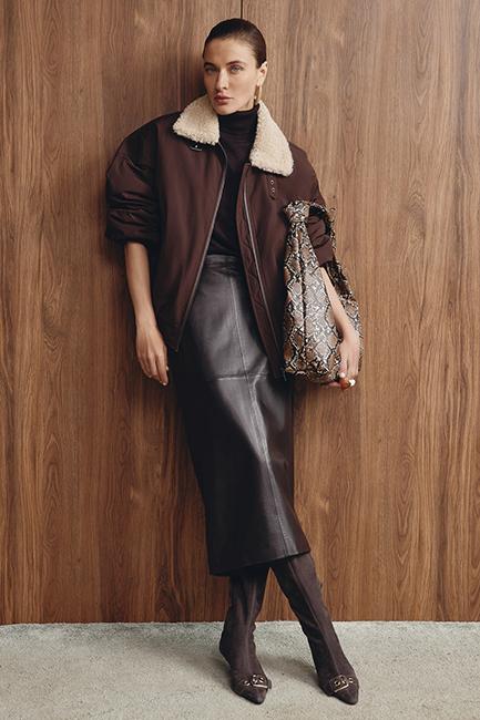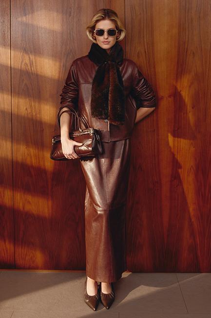Неоспоримый тренд осенне-зимнего сезона — total leather. Кожаные комплекты — это новая интерпретация выверенной классики. Их носят с футболками, водолазками или на голое тело. Акцент — на текстуре кожи: мягкая матовая, замшевая, глянцевая и с редким патинированным блеском. Вместо привычного черного — все оттенки коричневого: горький шоколад, ржавчина, терракот, корица, кофе, соленая карамель. Главное преимущество — к коричневой палитре легко добавить любой цвет: розовый, красный, сиреневый, голубой — выглядит это безупречно.
