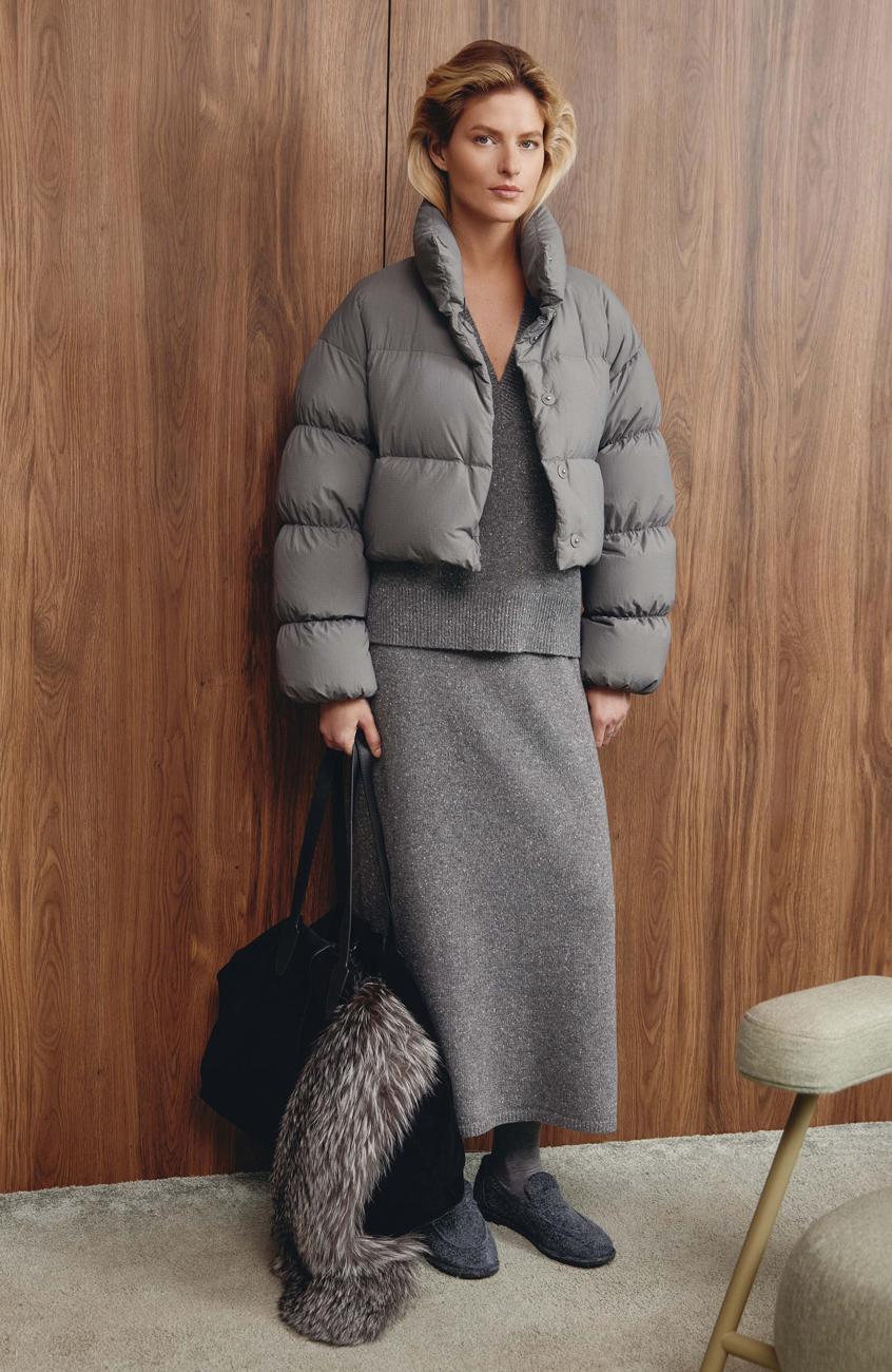 Все уже точно видели этот прием стилистов, но не лишним будет напомнить: поверх пуховика можно набросить свитер или кашемировый джемпер. Выбирайте контрастные фактуры — например, белый кожаный пуховик и серый свитер крупной вязки или наоборот: темный пуховик и пастель. Главное правило — не затягивать узел слишком туго, чтобы силуэт оставался естественным и свободным. Такой прием мгновенно делает даже самый базовый образ визуально более сложным и интересным.