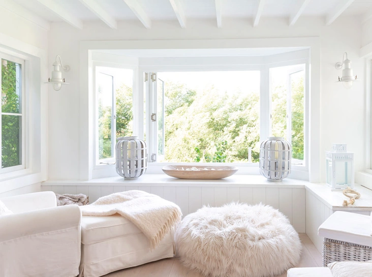 Пожалуй, один из главных компонентов уютного дома. Даже японские или римские шторы делают интерьер более мягким, потому что рассеивают свет. Как правило они подбираются под цвет другого текстиля: пледа, дивана, кровати, подушек, ковра или стульев. Желательно избегать ярких цветов и расцветок, иначе в интерьере будут видны только они. И даже если очень хочется, чтобы выглядело «дорого-богато», не делайте ламбрекены — драпировку сверху. Они выглядят уместно только в замке вроде Версаля. Беспроигрышный вариант — выбрать шторы в тон стен.