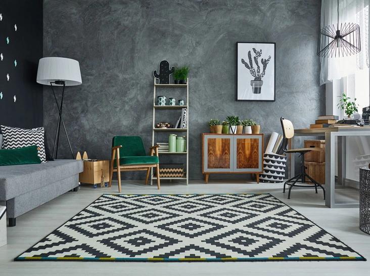 Добавьте ковер в любой интерьер и пространство станет намного уютнее. Он может восполнить даже отсутствие штор. Главное, выбрать правильный размер. Помните, как в советских квартирах ковер лежал в центре между диванами и креслами. Так делать не нужно: даже со стильным ковром создадите «бабушкин вариант». Ковер будет смотреться выгодно в том случае, если все предметы интерьера будут стоять на нем. Хотите тепла и комфорта, выбирайте персидский ковер спокойных оттенков или пэтчворк. Если нужно добивать цвета, смотрите, чтобы рисунок был в одной гамме, а не разноцветным. А вот реалистичные ковры в виде гигантских роз или фруктов и ковры с надписями лучше обходите стороной — украдут и стиль и ощущение дома.