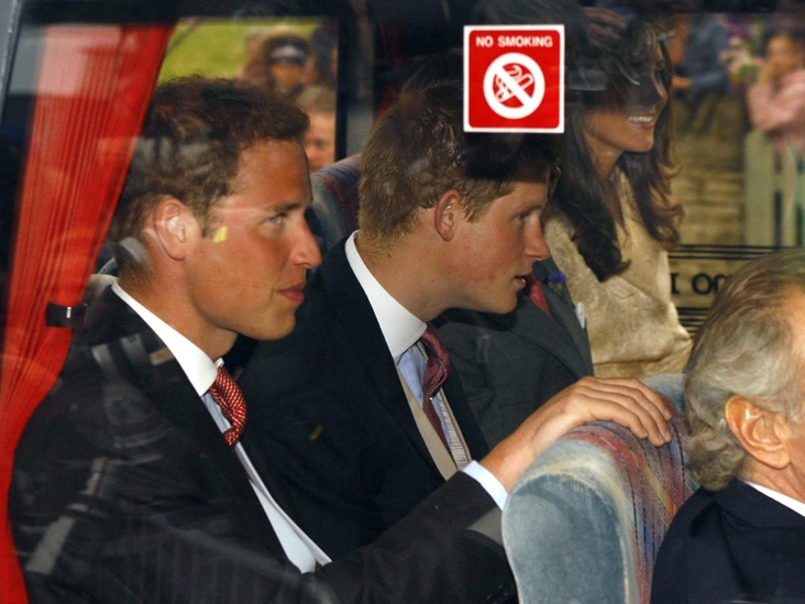 На этом снимке принц, его младший брат и будущая жена запечатлены в не совсем типичной для королевских особ ситуации. Они сидят в микроавтобусе для гостей свадьбы Лоры Паркер-Боулз — дочери герцогини Корнуольской.