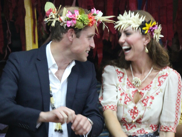 На этом снимки Кембриджские запечатлены уже в статусе семейной пары. Они танцуют в цветочных венках во время певческого мероприятия в Фунафути. Незадолго до этого чета отдыхала в особняке своего родственника во Франции, и папарацци застали Кейт загорающей топлес (читайте также: История одного скандала: как «голые» фото Кейт попали в сеть (и какой была реакция дворца)).