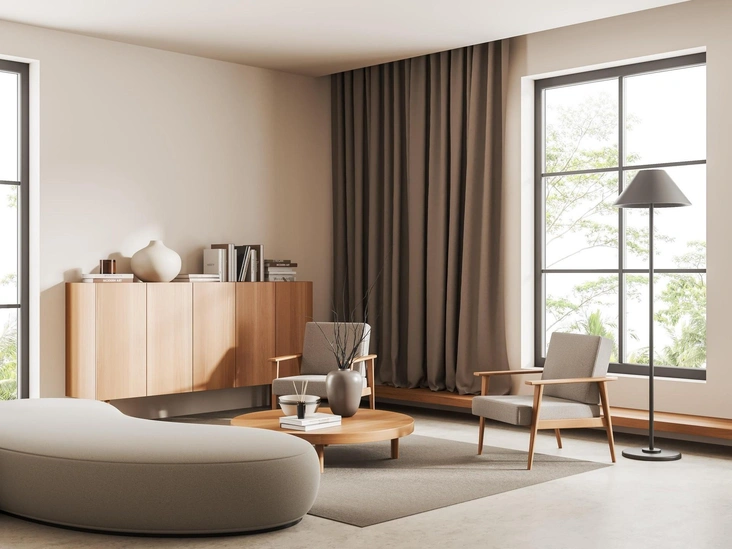 Шторы — это один из самых простых, но эффективных способов сделать интерьер более завершенным и утонченным. Использование плотных, текстурированных тканей, таких как бархат или лен, придаст пространству роскошь и уют. Подбирайте шторы с учетом цветовой гаммы интерьера, а также обратите внимание на качество материала: чем плотнее и тяжелее ткань, тем дороже будет выглядеть комната.