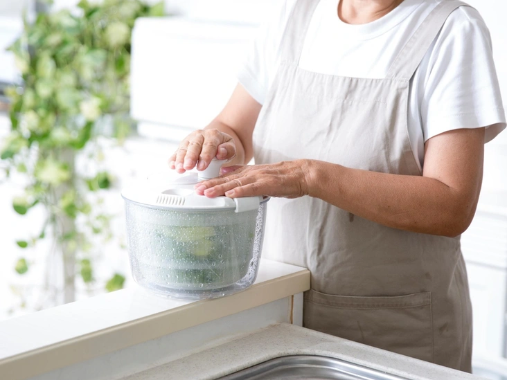 Этот девайс прокручивает салат в специальной емкости, чтобы высушить его после промывки. Минус этой сушилки в ее размерах. К тому же, простое чистое кухонное полотенце справится с этой задачей ничуть не хуже. Также можно использовать бумажные полотенца.