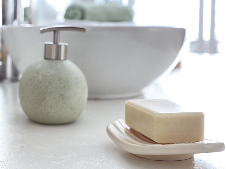 Во-первых, это облегчит уборку в ванной комнате. Для удобства используйте жидкое мыло с помпой или дозатор для мыла, который срабатывает без помощи рук. Это избавит вас от необходимости чистить грязную мыльницу или столешницу раз в несколько дней.