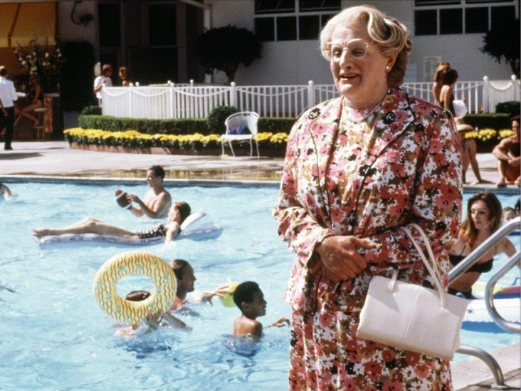 Чтобы после развода видеться с детьми, Дэниел Хиллард перевоплощается в пожилую старушку-экономку и устраивается на работу в дом к бывшей жене.