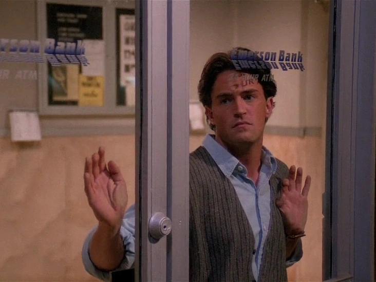 Седьмая серия первого сезона надолго осталась в памяти поклонников сериала. Во-первых, благодаря забавному поведению Чендлера, который оказался заперт в помещении банка с красивой и известной моделью, однако так и не смог заговорить с ней, а, во-вторых, этот эпизод запомнился поклонникам ситкома из-за решительной попытки Росса наконец-то признаться в своих чувствах Рейчел, которая, впрочем, заканчивается иначе, чем планировал герой.