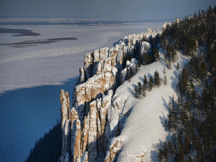 Ленские столбы внесены в список объектов Всемирного наследия ЮНЕСКО. 560 миллионов лет назад начала формироваться горная порода, из которой сложены Ленские столбы, — кембрийские известняки. Сначала они находились на дне океана, представляя собой его рифы. Потом на смену соленой воде пришла пресная, которая вымыла мягкую породу. Все это дело доработали ветер, дождь, снег, морозы. И получилось то, что получилось — 40 километров вертикально вытянутых скальных образований, причудливо громоздящихся вдоль берега Лены.