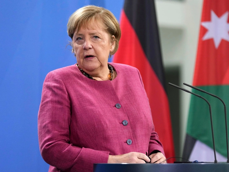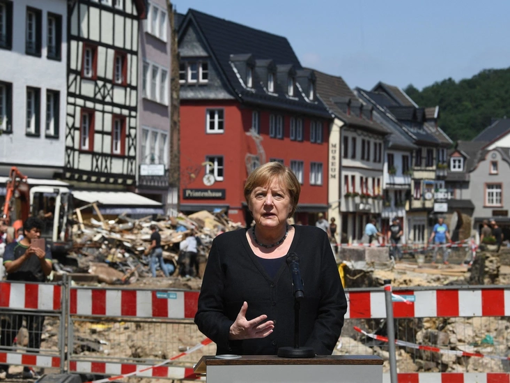 20 июля. Канцлер Германии Ангела Меркель выступает на пресс-конференции после посещения пострадавшего от наводнения курортного города Бад-Мюнстерайфель в западной Германии.