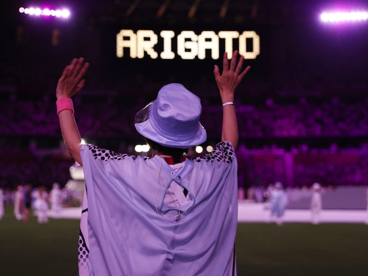 8 августа. Женщина на церемонии закрытия Олимпийских игр в Токио. В командном зачете лидерами стали американцы: у них 39 золотых медалей, 41 серебряная и 33 бронзовых. Российские спортсмены, из-за допингового скандала и санкций со стороны МОК и ВАДА выступавшие в Токио в нейтральном статусе, завоевали 71 медаль (20, 28, 23). Это третий результат в командном зачете по количеству наград и пятый — по золоту.