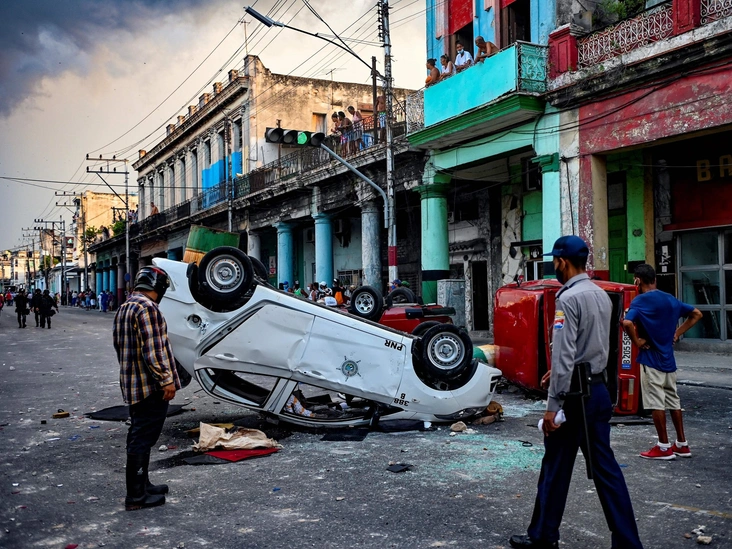 11 июля. Улицы Гаванны. Накануне прошла масштабная акция протеста против президента Кубы Мигеля Диас-Канеля и коммунистического правительства. Маршируя по городу, люди скандировали: «Долой диктатуру» и «Мы хотим свободы».