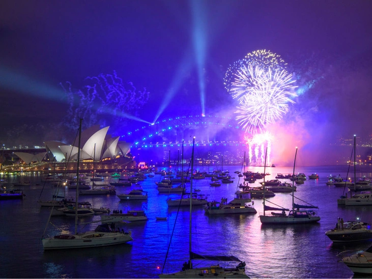 1 января. Новогодний салют над рекой в Сиднее, Австралия.