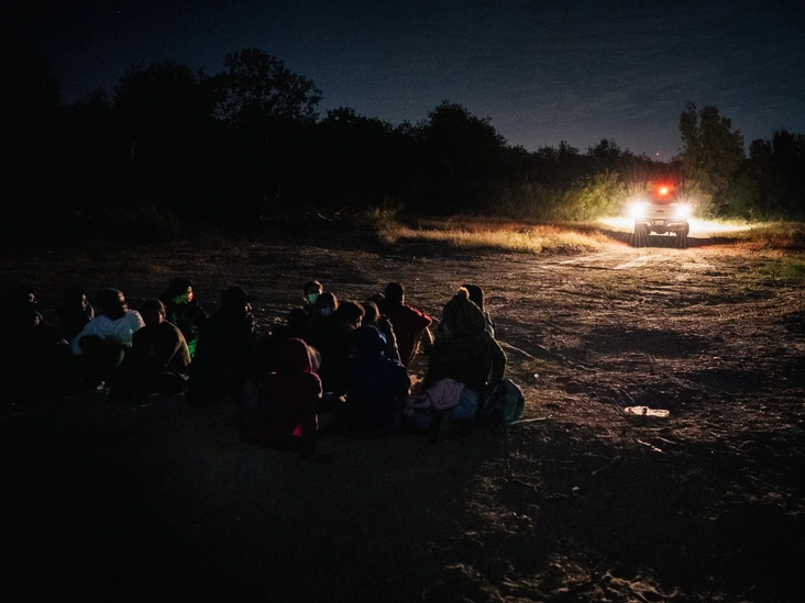 19 июня. Иммигранты ждут, пока их доставят в пункт пограничного патруля, после пересечения Рио-Гранде в США.