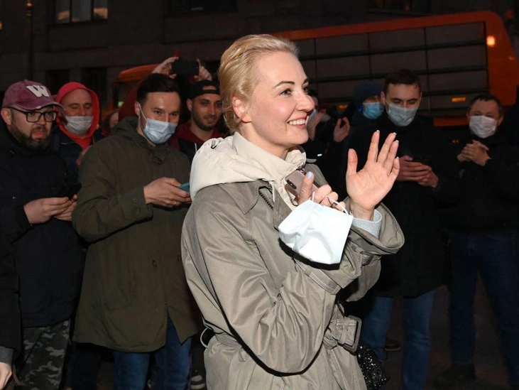 21 апреля. Юлия Навальная, жена оппозиционера Алексея Навального, выходит на митинг в поддержку своего мужа. Менее чем через полчаса ее задержит полиция.