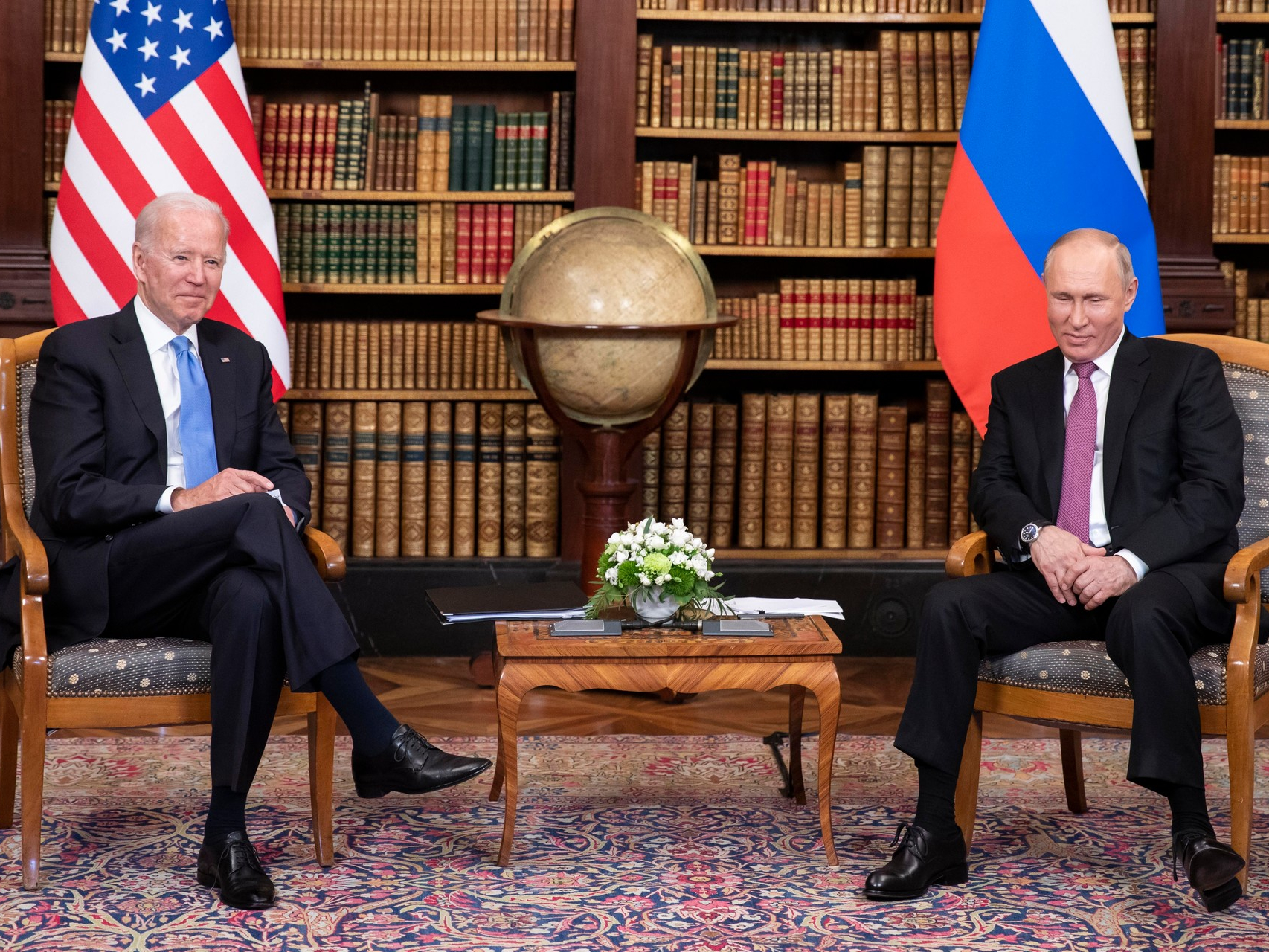 16 июня. Владимир Путин и Джо Байден во время переговоров в Швейцарии. Это их первая встреча в качестве лидеров стран.