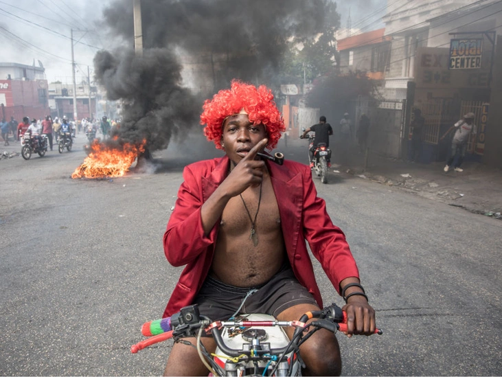 14 февраля. Участник демонстрации против президента Гаити Жовенеля Мойза. Он, как и другие жители столицы, вышел на улицу в знак протеста против диктатуры.