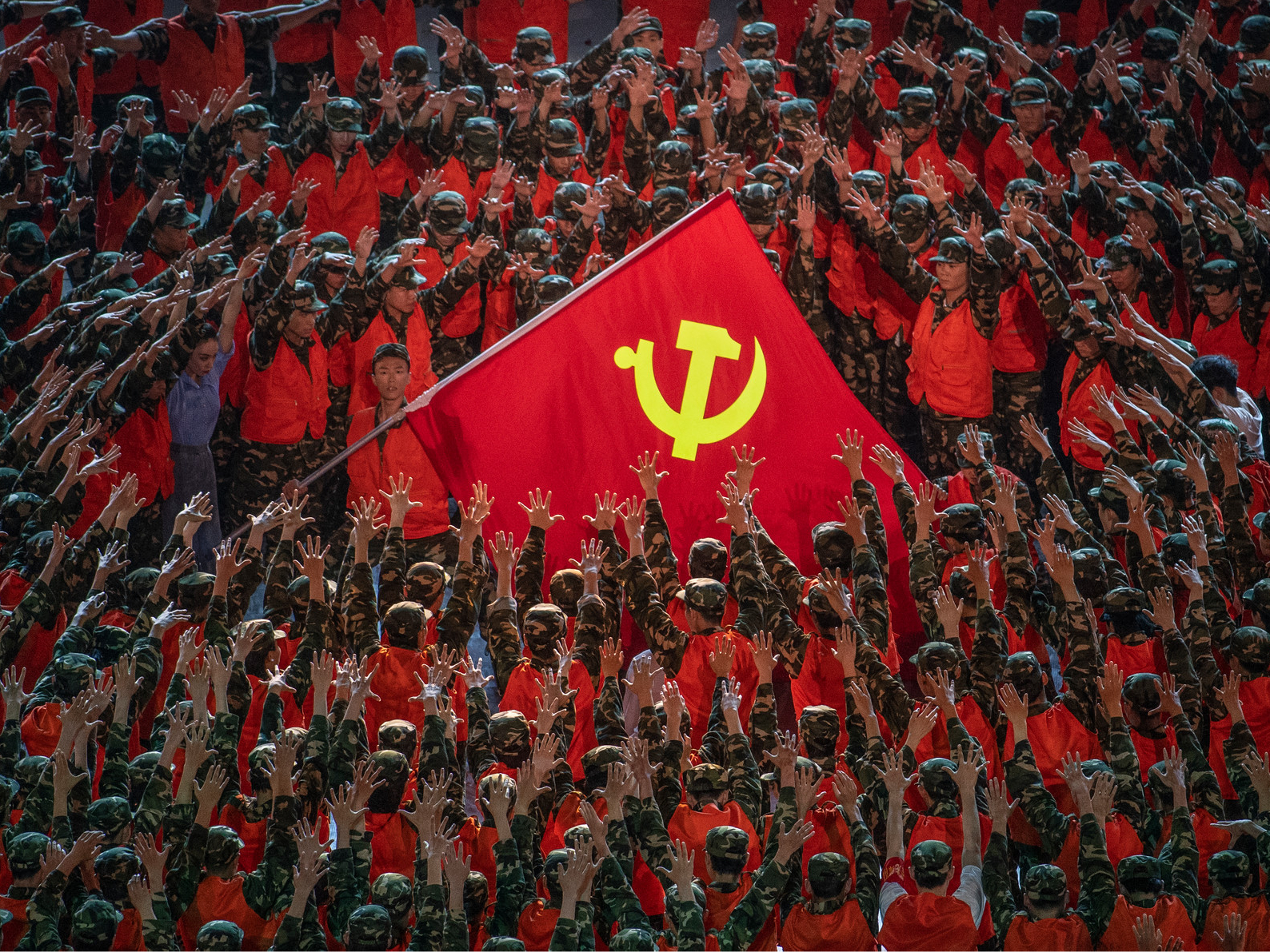 28 июня. Артисты исполняют номер с большим коммунистическим флагом на стадионе в Пекине. В этом году китайская коммунистическая партия (главная правящая партия страны) отмечает 100 лет со дня основания.