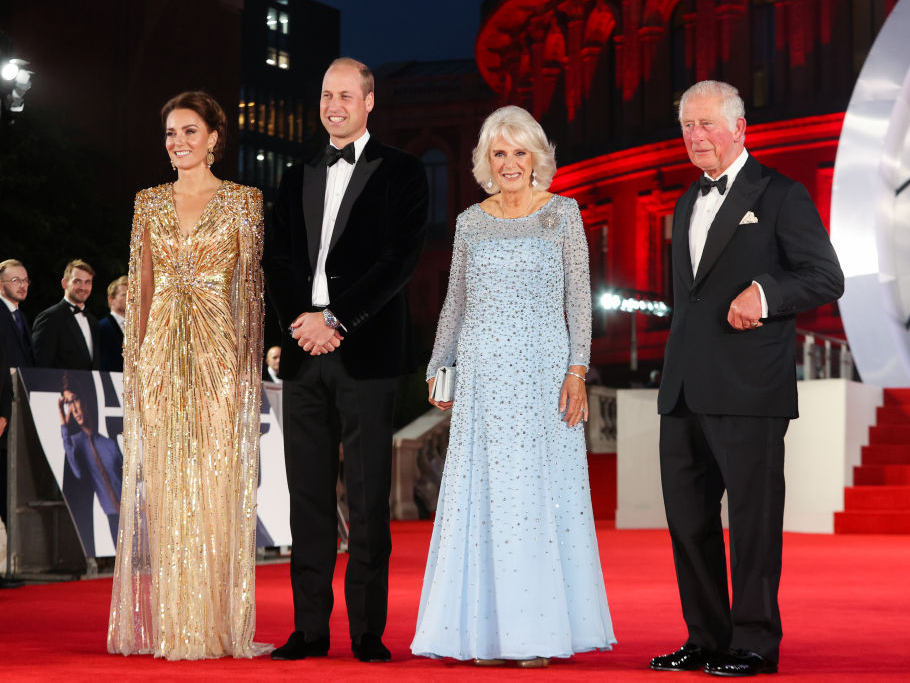 28 сентября. Герцог и герцогиня Кембриджские, принц Чарльз и герцогиня Корнуолльская на премьере нового фильма о Джеймсе Бонде «Не время умирать» в Альберт Холле.
